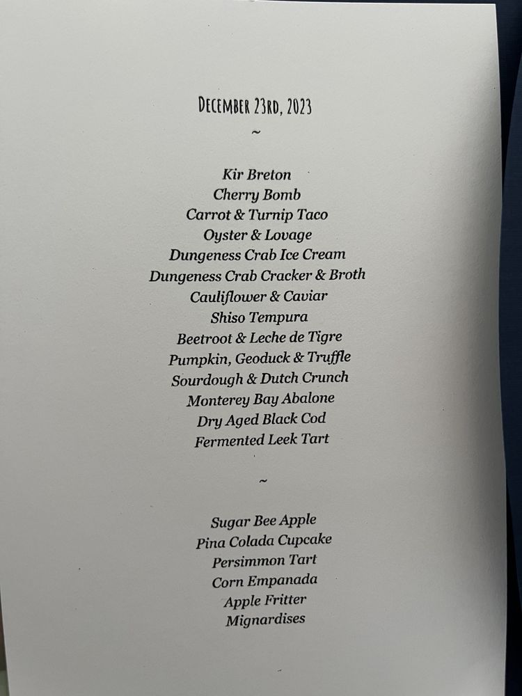 Atelier Crenn, located in San Francisco, offers a unique dining experience with its Chef's Grand Tasting Menu priced at $220. The restaurant caters to pescatarians, vegans, and vegetarians, providing a diverse range of options. Customers praise the innovative and refined food at Atelier Crenn, with dishes that are like poetry in motion. Standout dishes include the apple cider truffle, crab "three ways," and the pine ice cream, showcasing the chef's creativity and attention to detail. The restaurant's atmosphere is upscale and the service impeccable. Overall, dining at Atelier Crenn is an unforgettable experience, combining artistry, flavors, and memories in each dish.